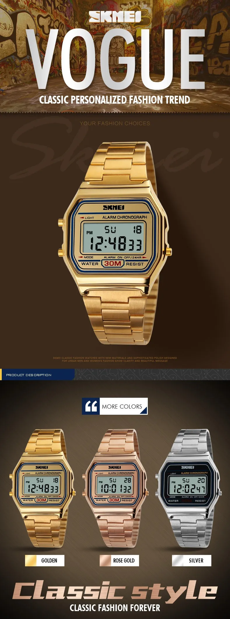 New Fashion gold silver Couple Watch Led digital watch square men women dress sports watches watch women gold Relogio Masculino