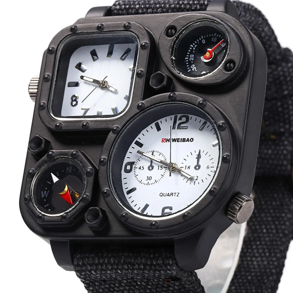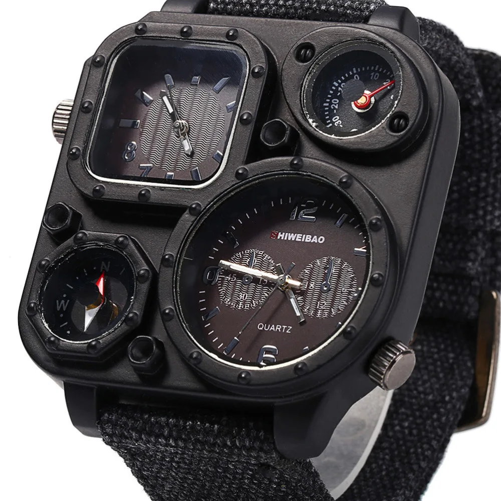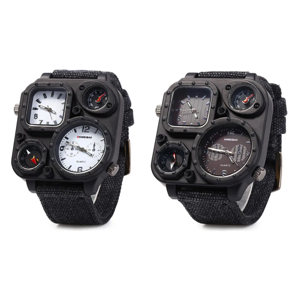 SHIWEIBAO J1169 Watches Men Big Dial Dual-Movement Sport Quartz Watch Men Military Compass Canvas Wristwatches Relogio Masculino